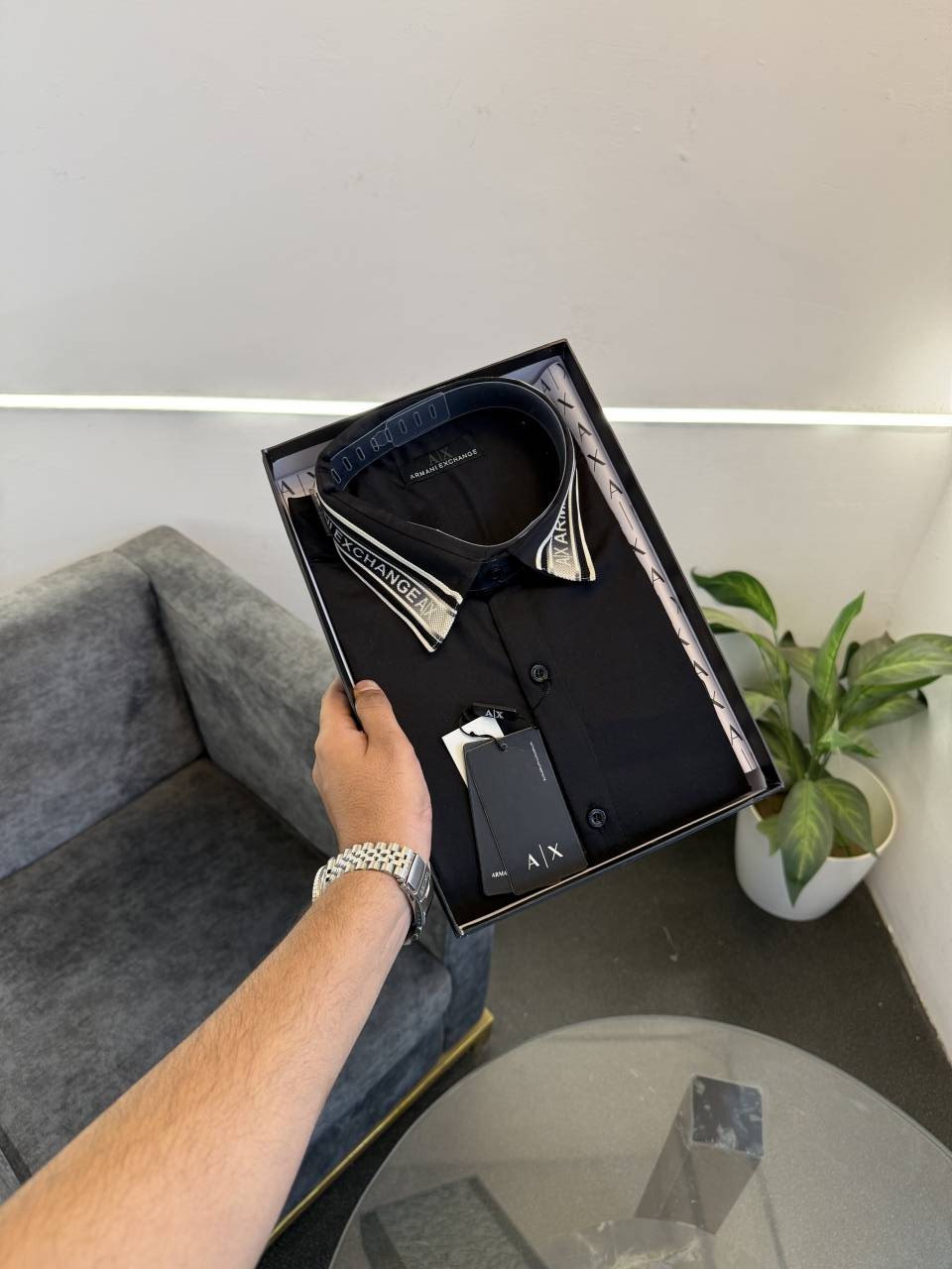 ? *Armani exchange imported box pack shirt with collar brand strip steel logo on chest with brand buttons now in stock*?