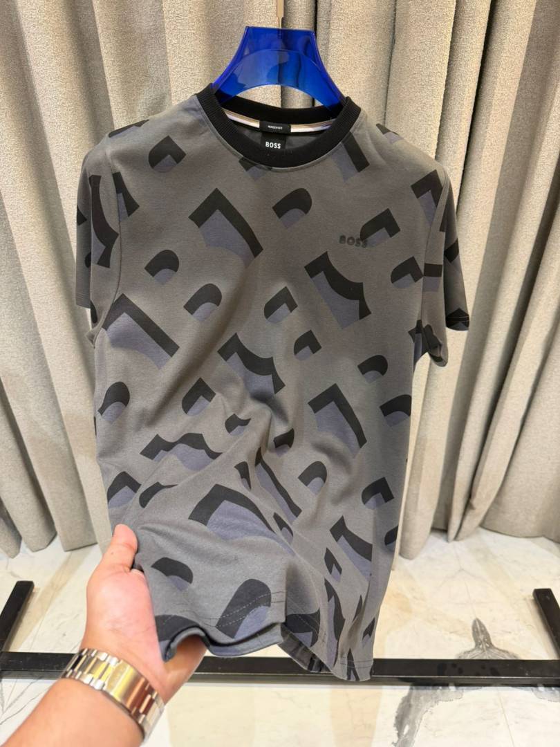Boss Middle Brand Embossed Print Round Neck T-shirt Orange