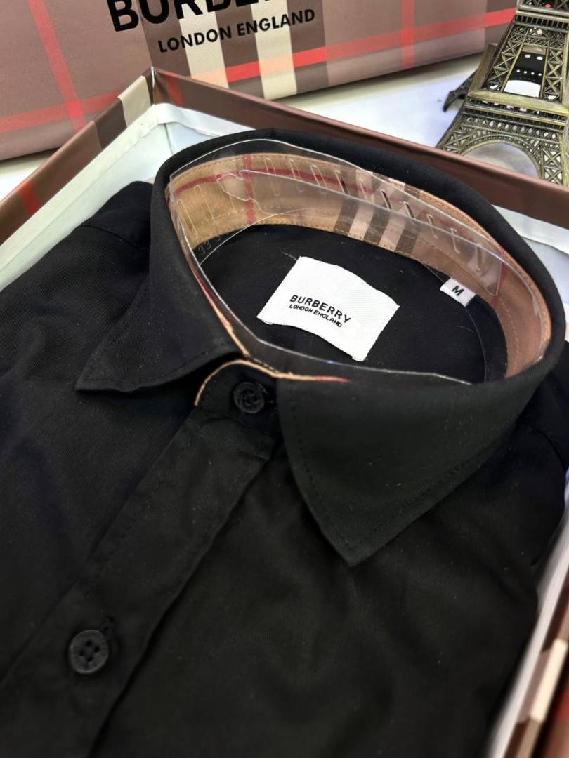 Burberr y Black Premium Shirt With Brand Box Packing and Carry Bag F1946-BL