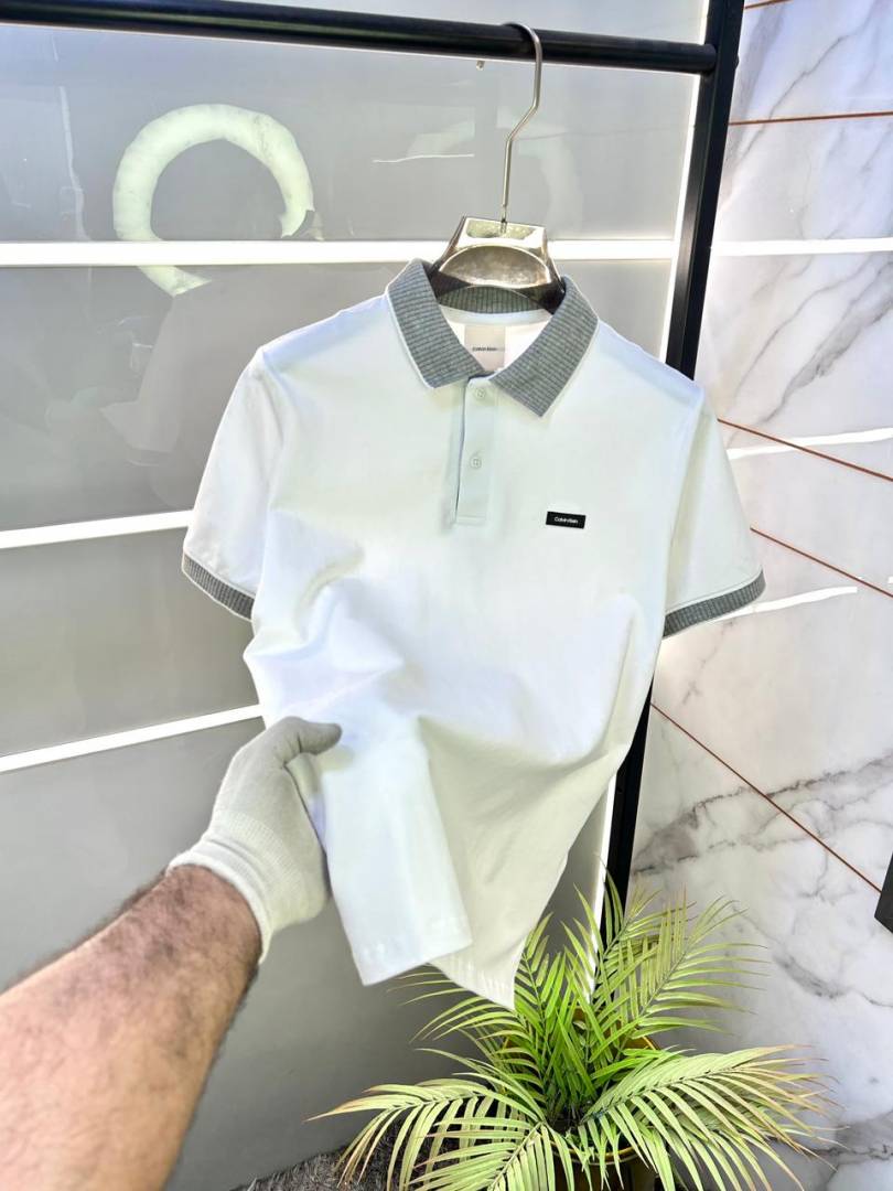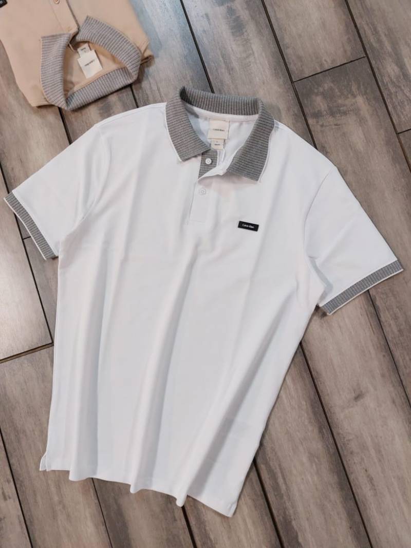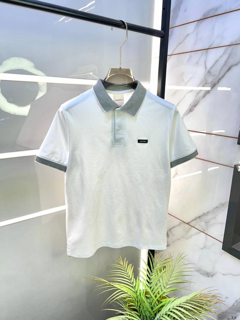 Calvin_Klein White Collar Neck Premium Polo T-shirt F3383-WH