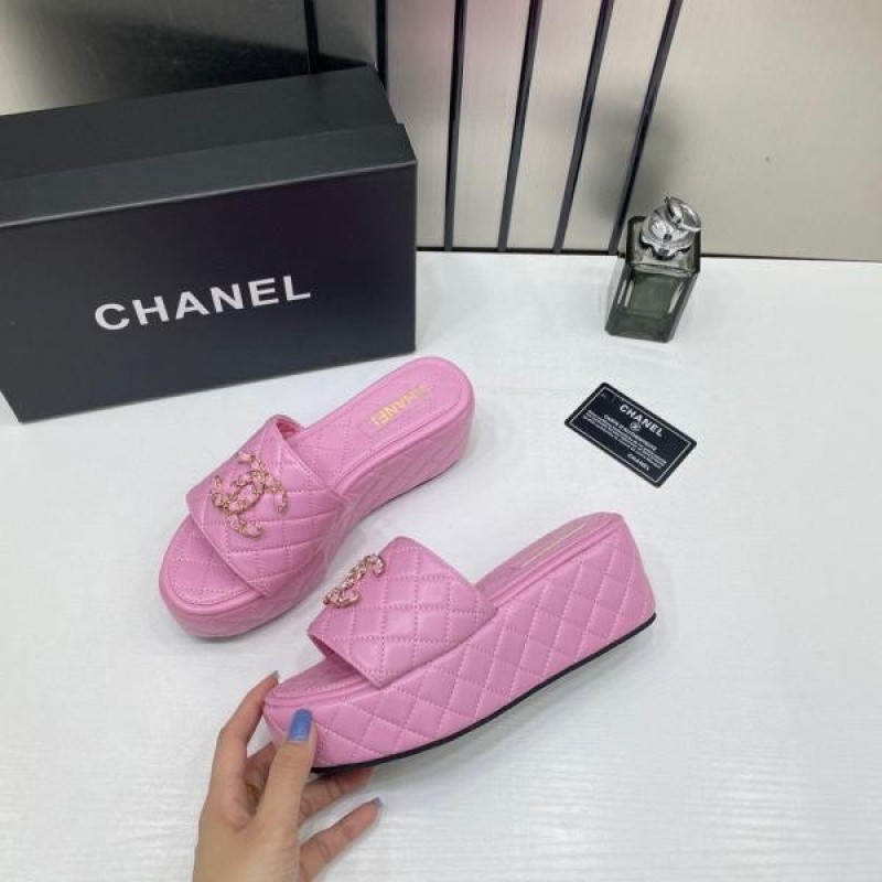 Chanel Lambskin Quilted CC Mules Wedge Sandals With OG Box Dust Bag Pink 6623 2 B4U