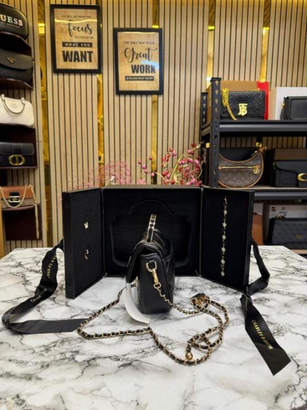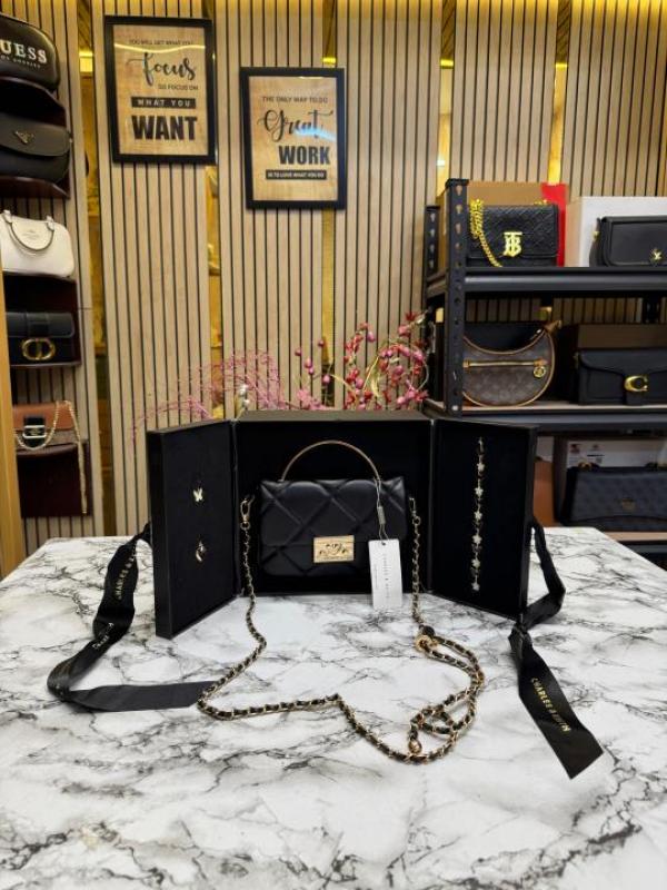 Charles & Keith Boxy Quilted Top Handle Bag Gift Set (Black)