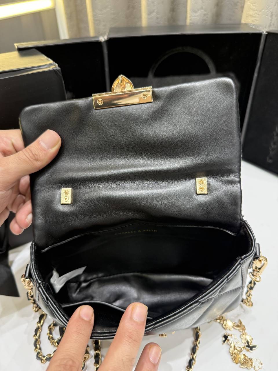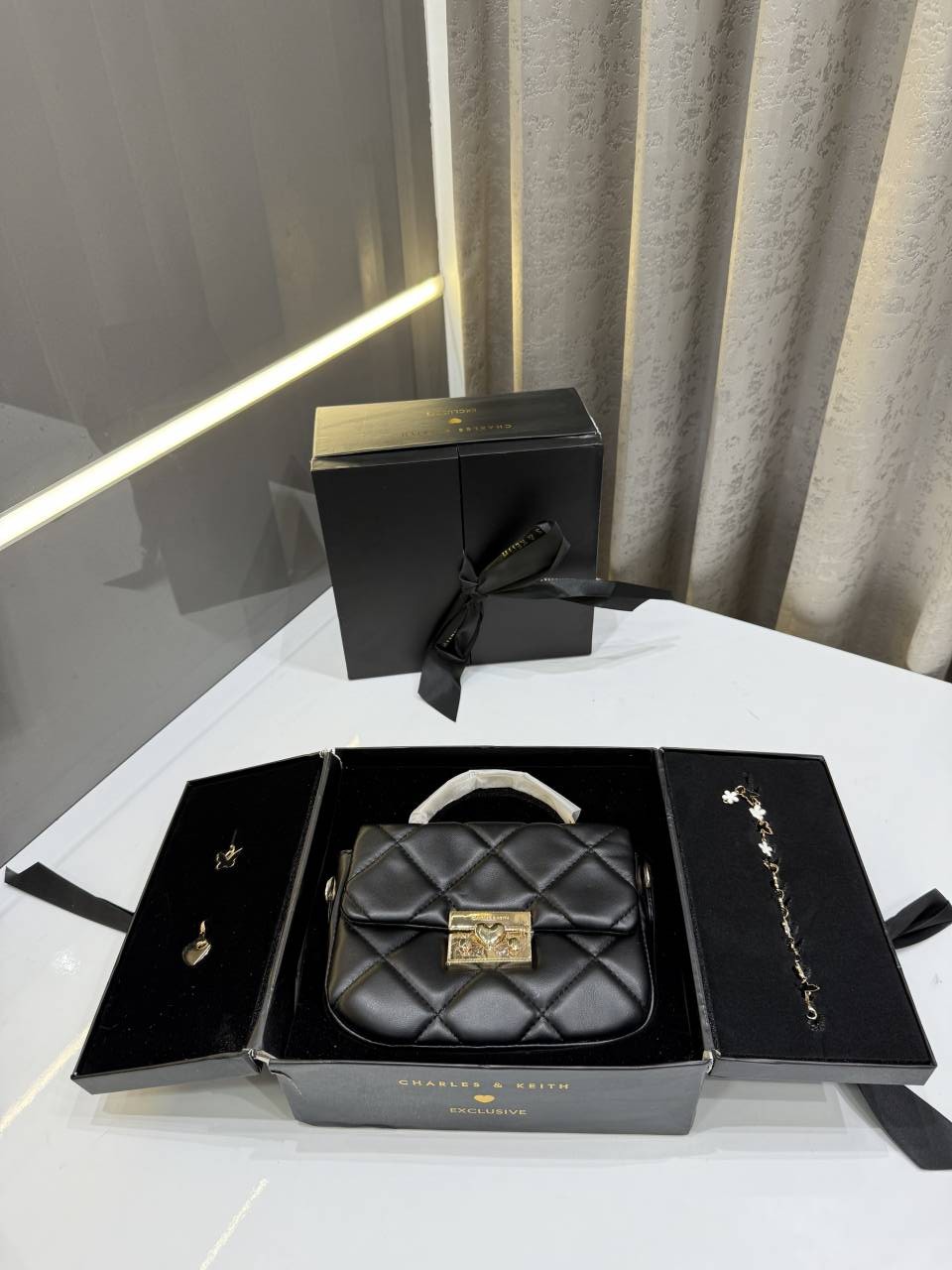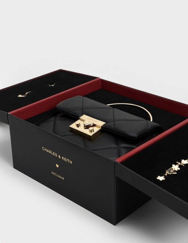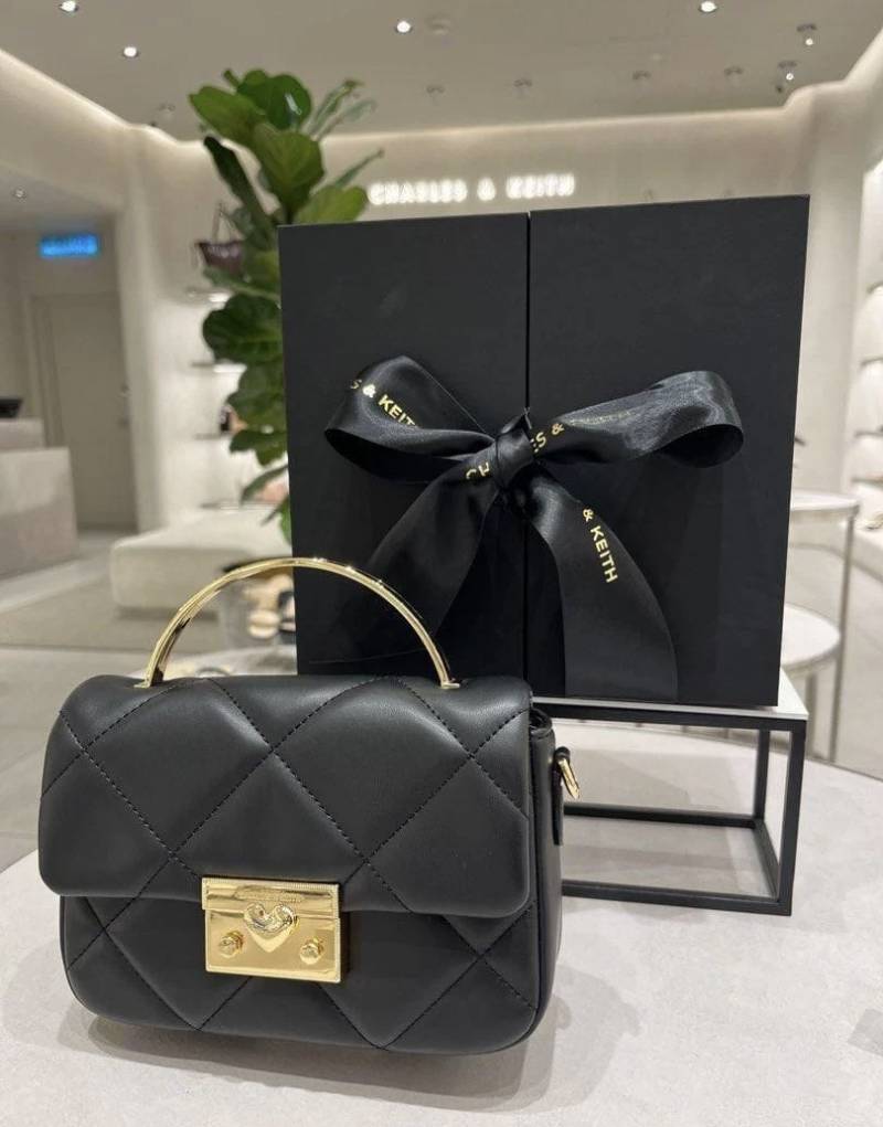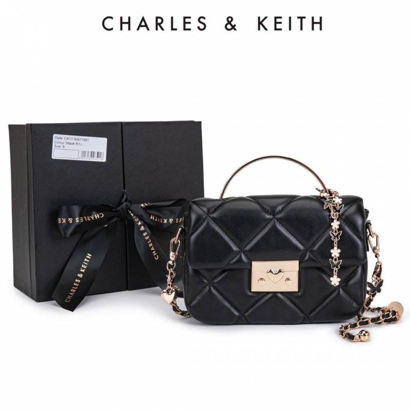 CHARLES KEITH HEART CHAIN BLACK BAG PREMIUM WITH GIFT BOX