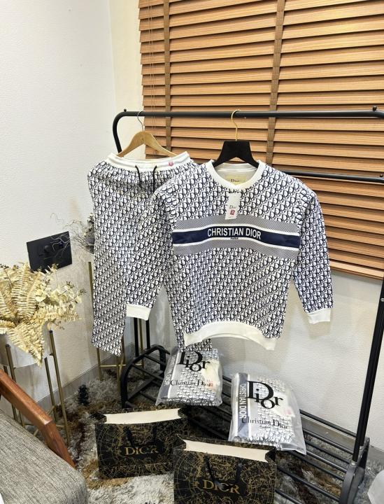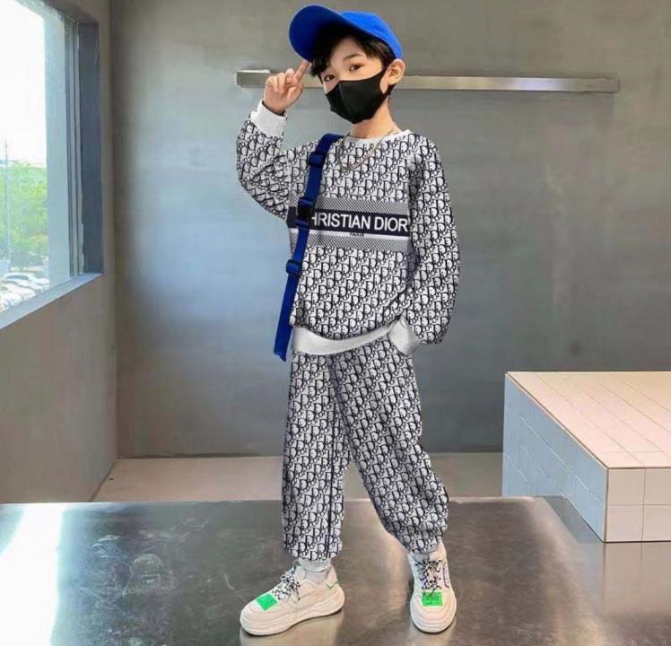 Christian Dio_r Monogram Print Navy Blue Turkey Imported Premium Cord Set For Kids With Brand Packaging (DN 561)