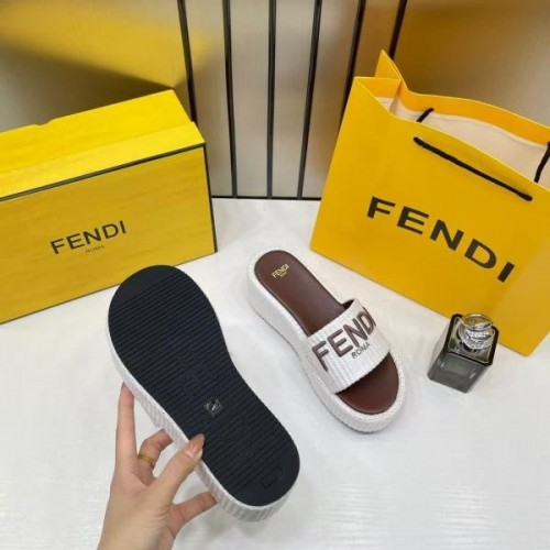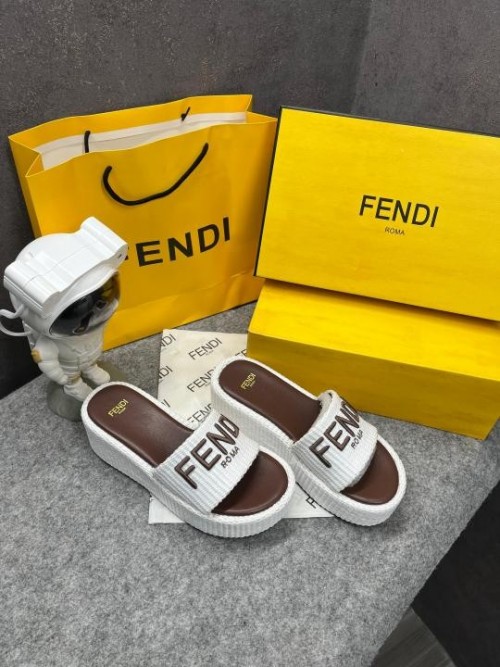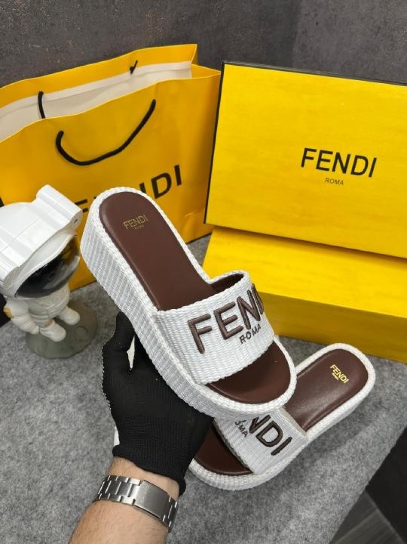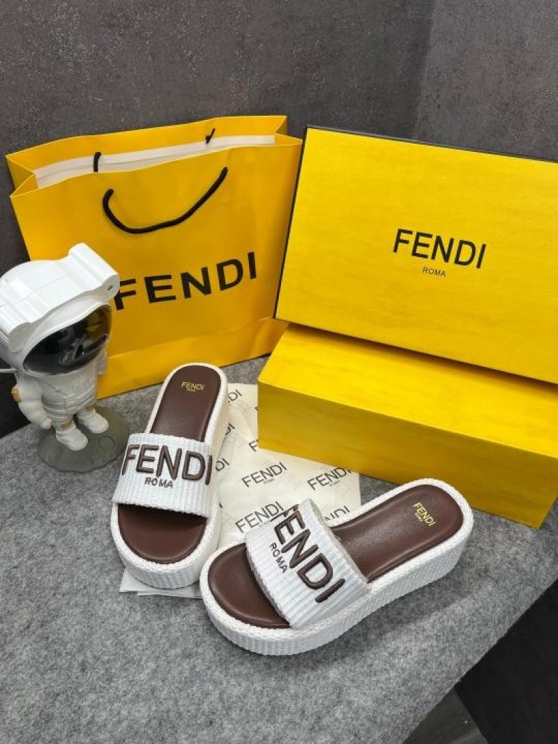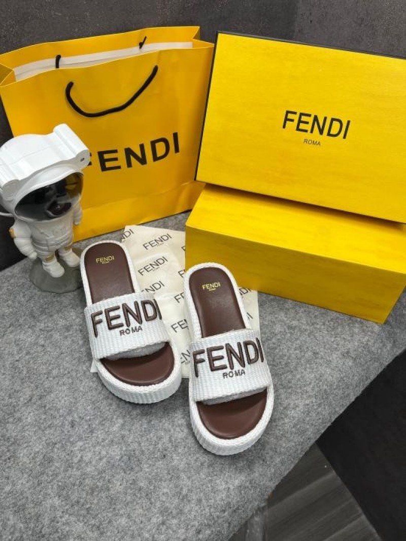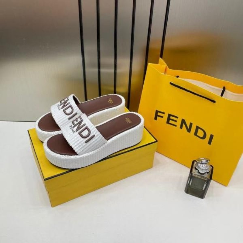 Fendi Sunshine Flip flop Sandal With Platform In Cotton Fiber White Brown With OG Box Carry Bag B4U