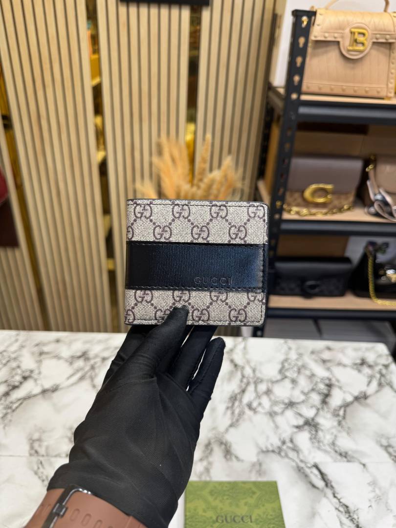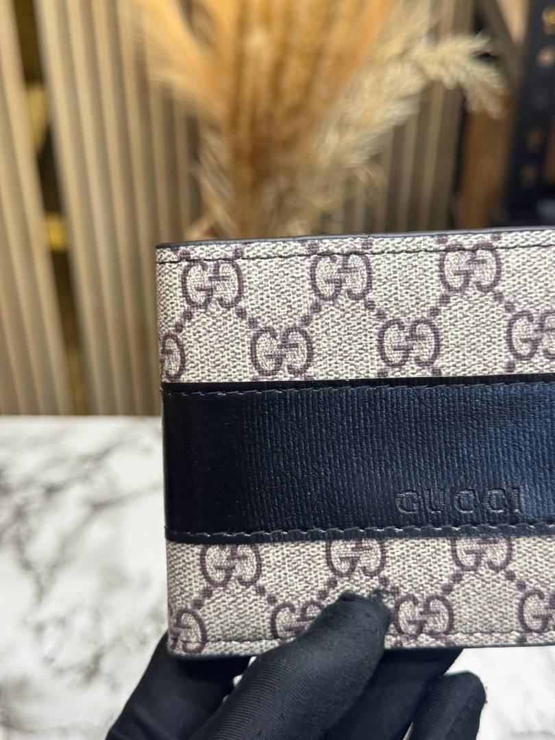Gucc_i GG Supreme Bi-fold Leather Wallet With Box Including Card (60223-Black)