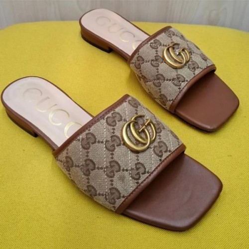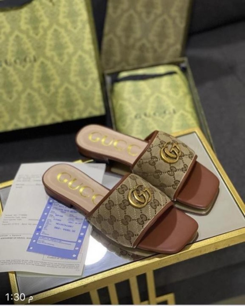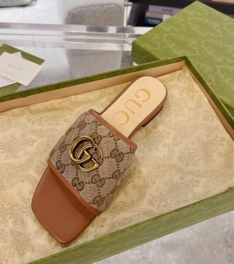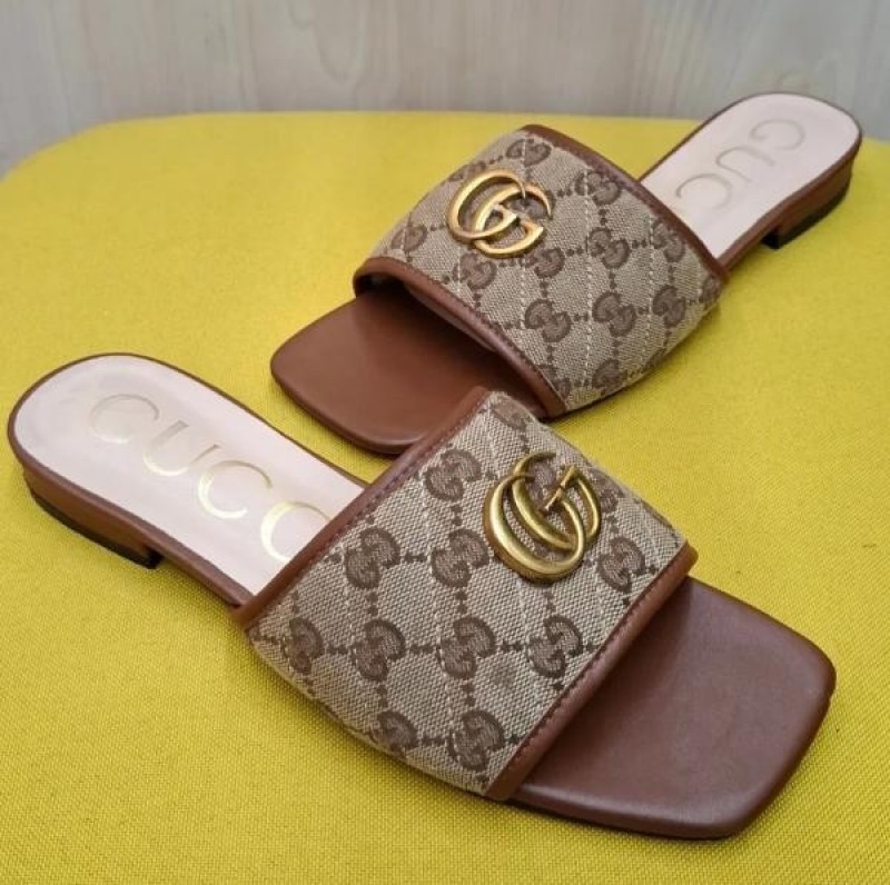 Gucci Jolie Matelasse Brown Canvas Leather Slides For Women With Original Box And DustCover B4U
