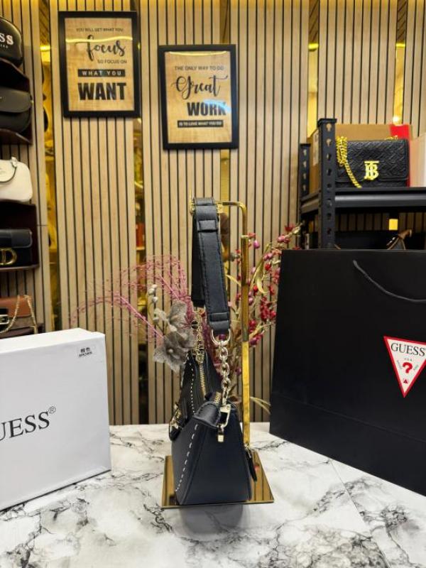 Guess Womens Eco Mietta Flap Shoulder Bag with box and dust bag including carry bag (Black)