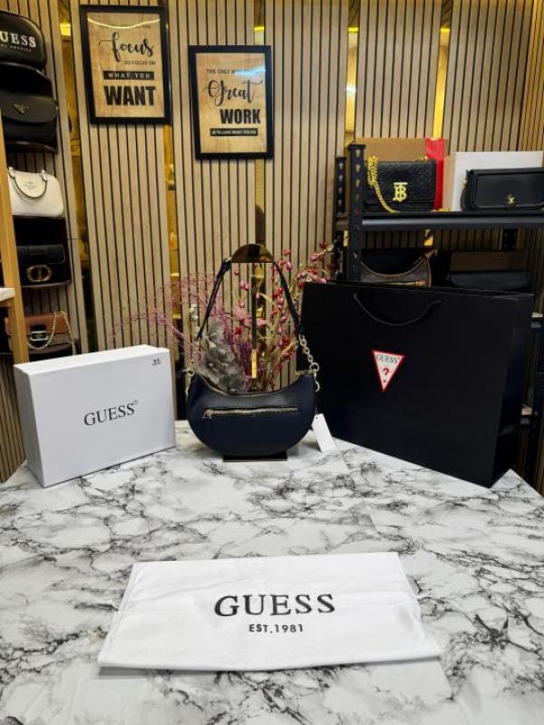 Guess Nastra Top Zip Shoulder Bag With Box And Dust Bag Including Carry Bag (Black)