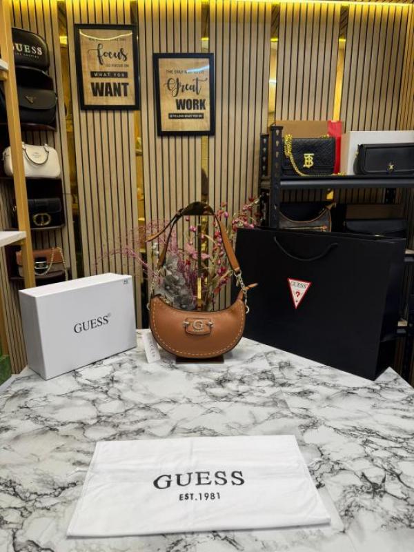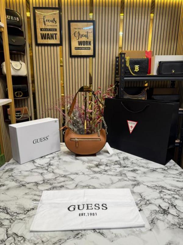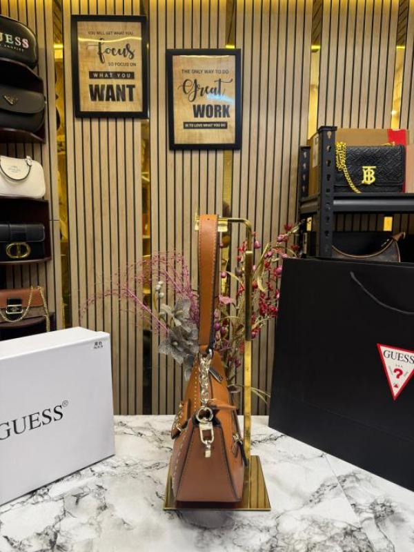 Guess Nastra Top Zip Shoulder Bag With Box And Dust Bag Including Carry Bag (Brown)