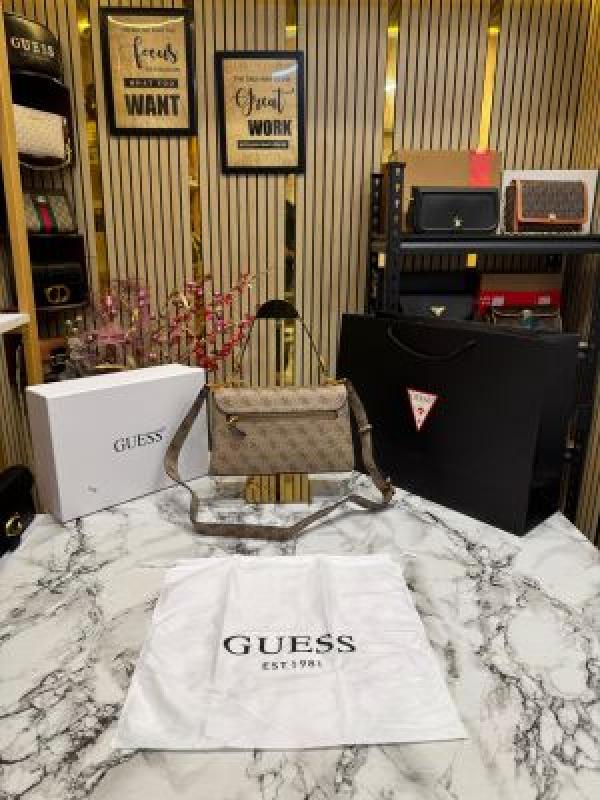 Guess Noelle Crossbody Flap Bag With Box And Dust Bag Including Carry Bag (Khaki)