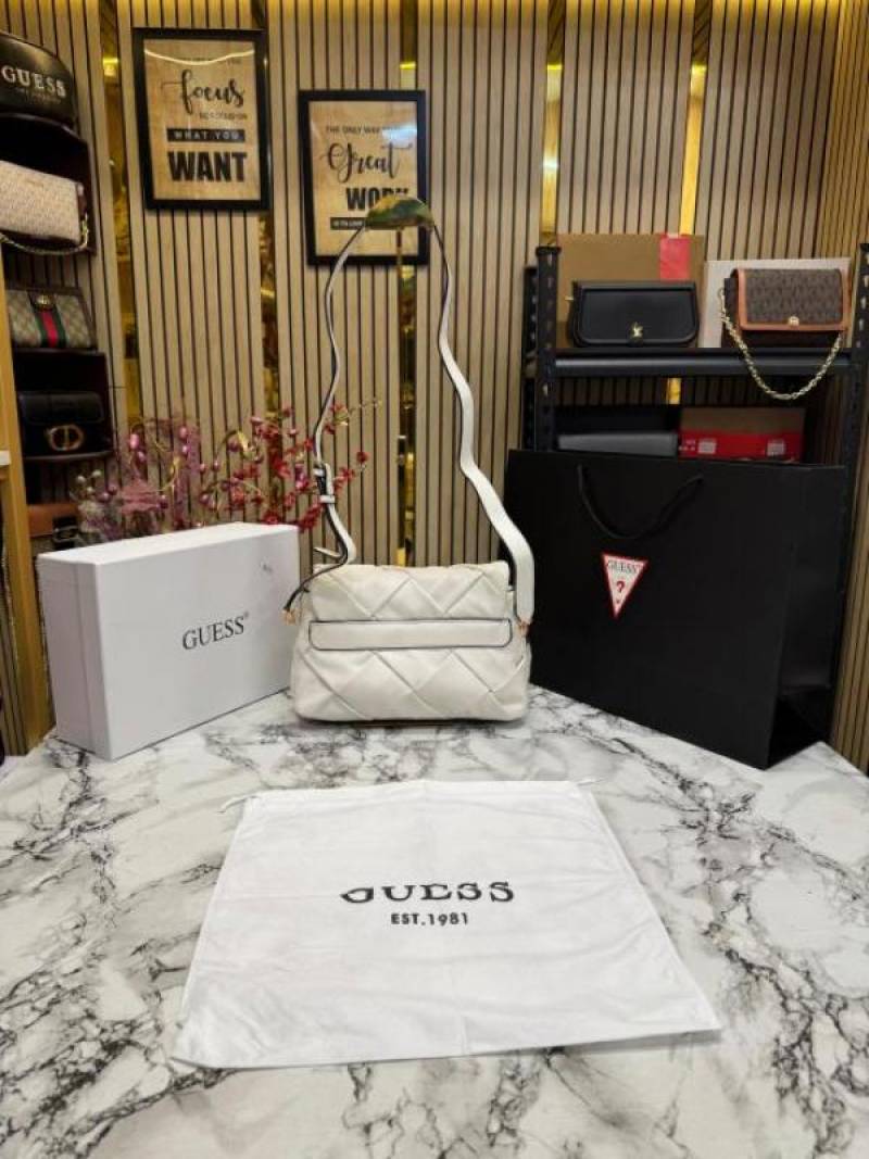 Guess Quilted Crossbody Bag With Box And Dust Bag Including (White)