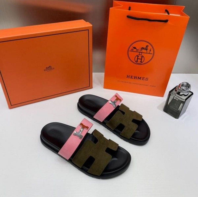Hermes Chypre Sandal For Womens Pink Brown With OG Carry Bag B4U