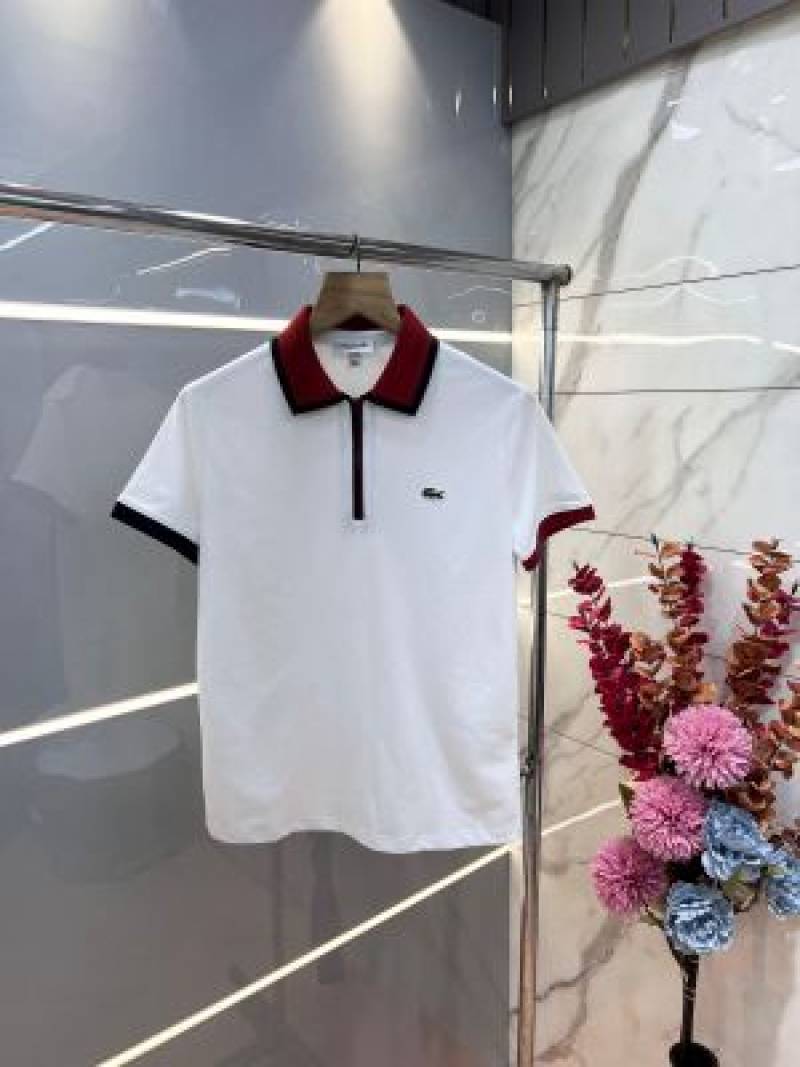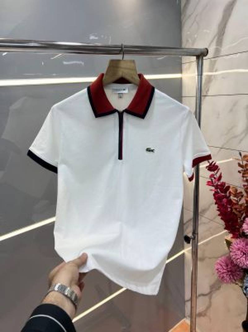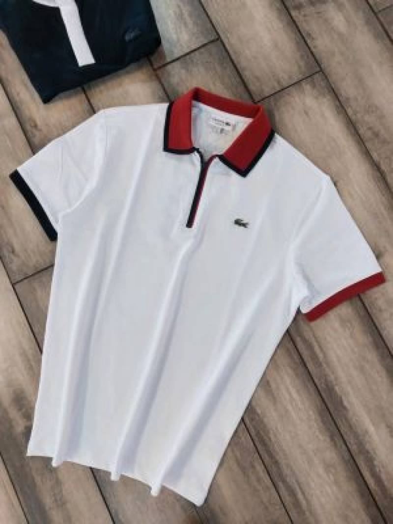 Lacost e White Premium Cotton Pique fabric Polo Tshirt with Collar Design and Embroidered Logo Zip Style 3111
