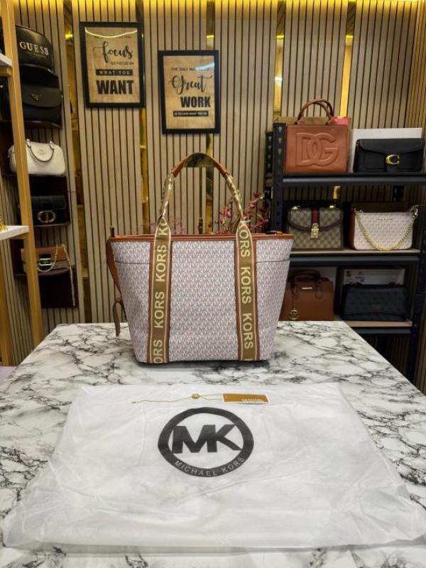 MICHAEL_KORS MAEVE SIGNATURE LOGO SMALL CONVERTIBLE OPEN TOTE WITH DUST BAG (BIEGE BROWN)