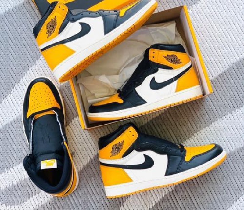 NikeAir Jordan Retro 1 OG Yellow Taxi SEMI UA Superior QUALITY With Original Yellow Box 2 Laces KM