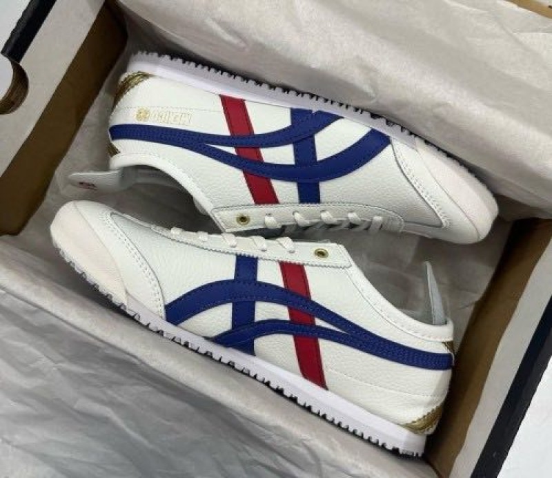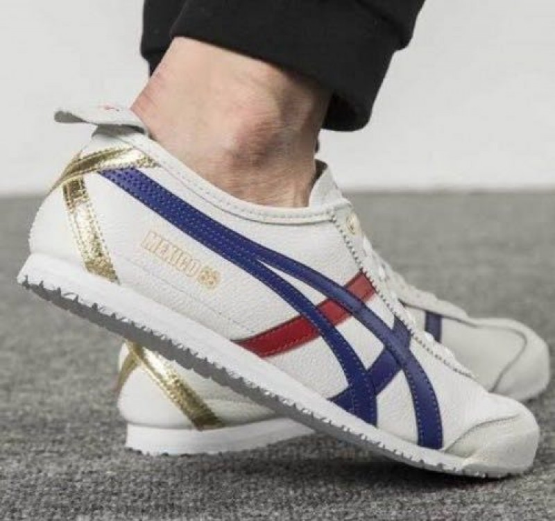 Ontisuka Tiger Mexico 66 White Blue Metallic Gold Leather BS
